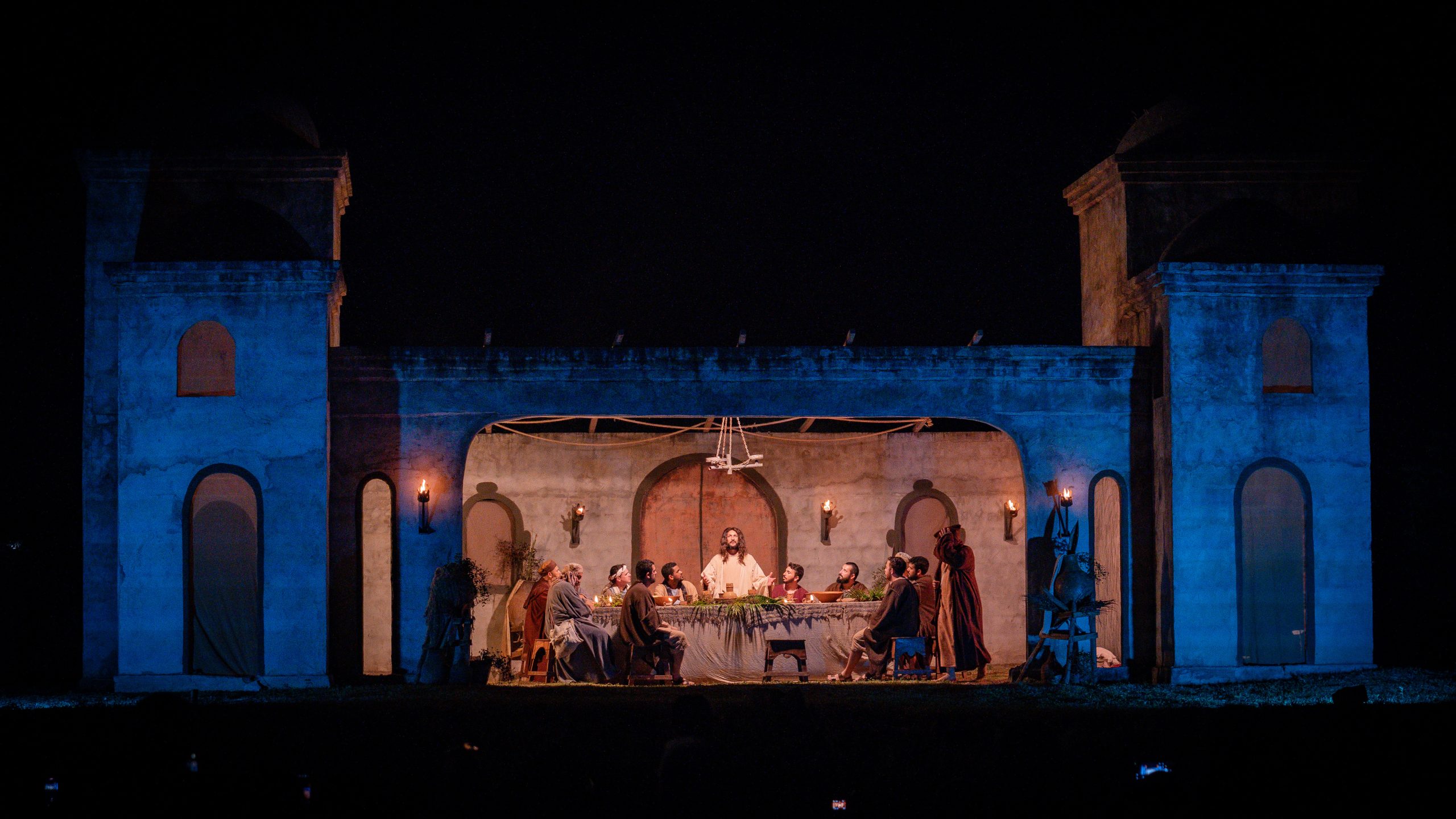 Os cenários são construídos em alvenaria, formando uma verdadeira cidade cenográfica que transporta o público ao contexto histórico da narrativa bíblica. Já os figurinos, confeccionados pelos próprios integrantes, são resultado de pesquisas históricas e referências bíblicas, buscando representar com fidelidade o período da história de Jesus Cristo.